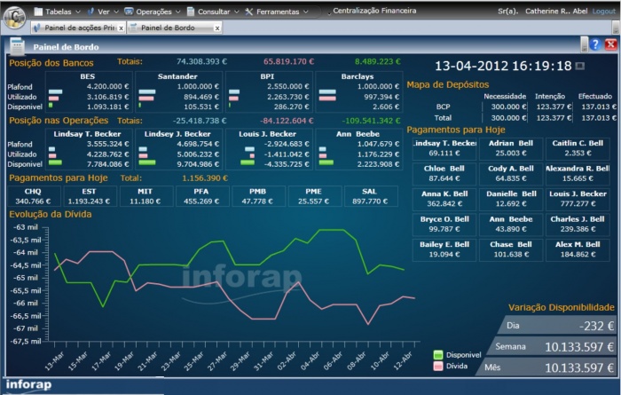 Esta solução foi desenvolvida para gerir as responsabilidades de pagamentos de um conjunto de empresas de forma centralizada, tendo em consideração a posição bancárias das diversas contas.