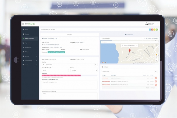 A aplicação foi concebida para dar resposta a empresas de instalação e assistência técnica de equipamentos.