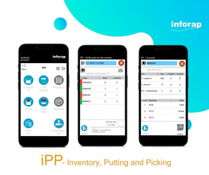 O IPP é a extensão do ERP em ambiente de armazém, permitindo que se efetuem tarefas de logística de forma simples, objetiva e móvel. Entre as várias tarefas disponíveis, destacam-se a receção de mercadorias, o picking de encomendas de clientes, inventários e transferências entre armazéns.
